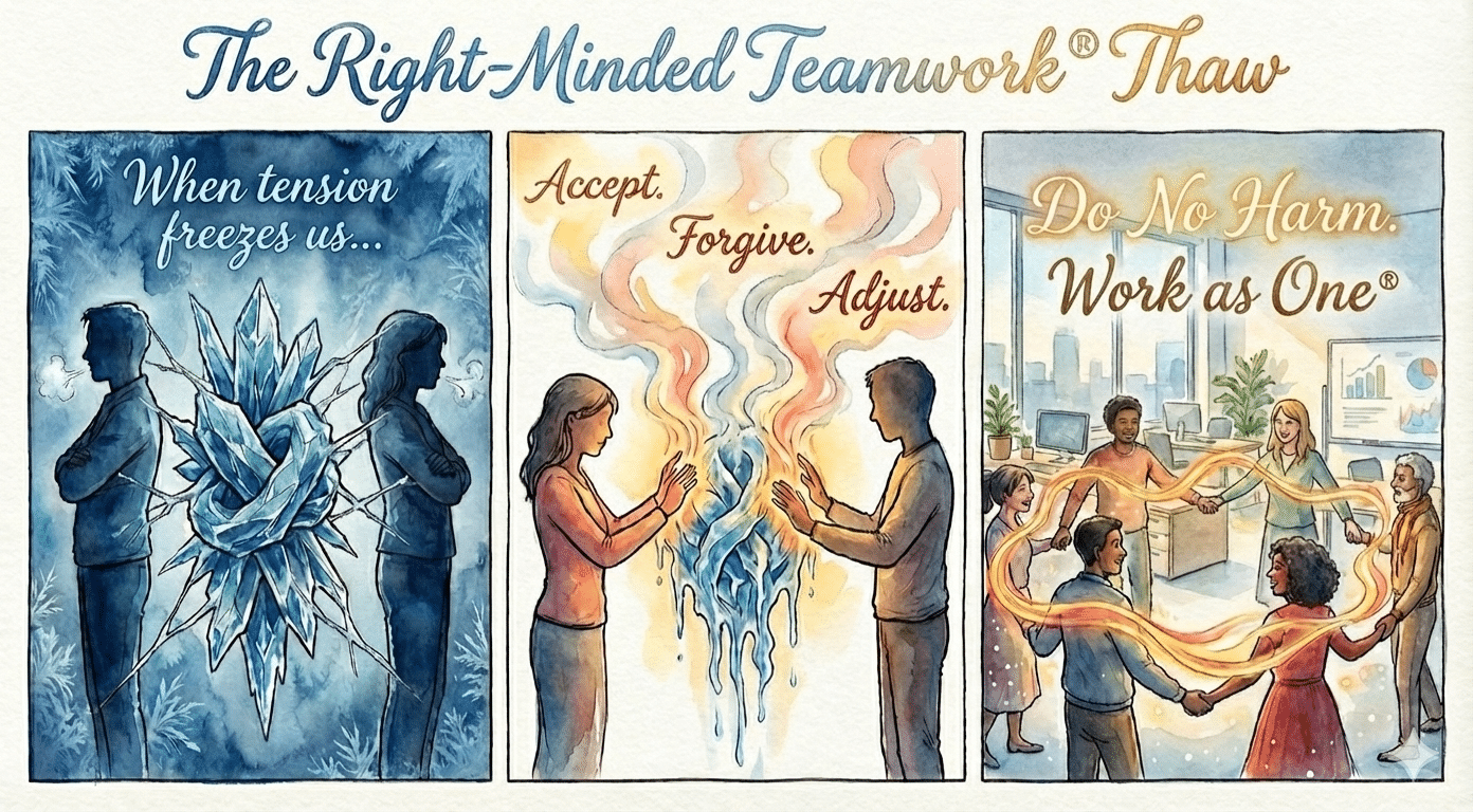 Accept, Forgive, Adjust are the three core, non-negotiable mindsets that define the essential attitudes and actions of a Right-Minded Teammate.
